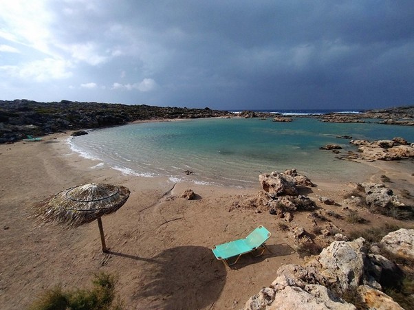 You will find Orthi Ammos right next to the famous Frankokastello, but it is often ignored by the crowds. The name actually means vertical sand because of the steep hill you have to traverse to reach the shore.